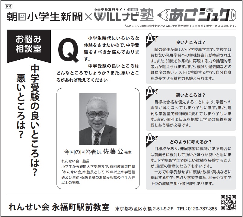 注目塾のコラムを朝日小学生新聞に掲載しております。